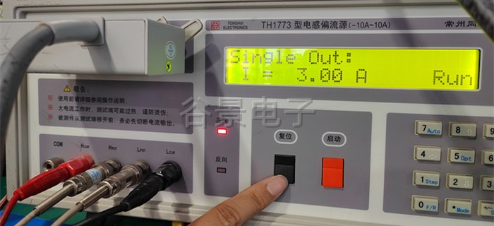 4、按測試儀器上的紅色啟動按鈕,開始加載電流,此時能看到感值隨著電流的變化在變化,這個時候要做好相應的數據記錄;